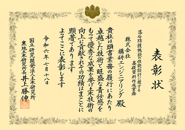 このたび、当社は国立研究開発法人土木研究所寒地土木研究所の「令和6年度優良業務等表彰」において、以下の業務で表彰を受けました。