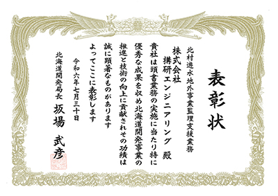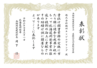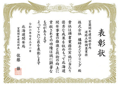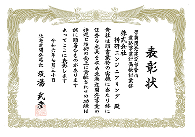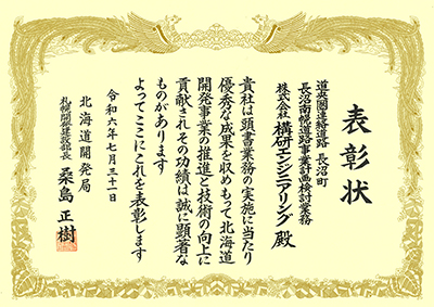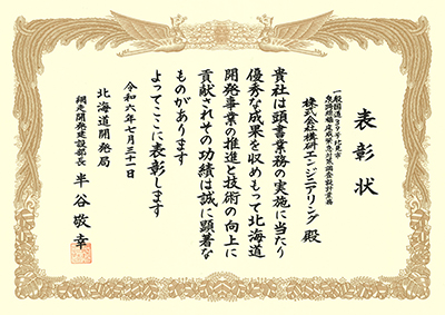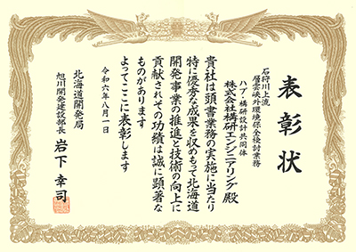 国土交通省北海道開発局「令和6年度優良工事等表彰」において、局長表彰及び部長表彰を受賞いたしました。