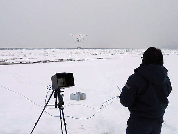 斜里町の愛好家で「知床蜃気楼・幻氷研究会」代表の佐藤氏と北見工業大学 館山一孝准教授が連携して行っている「流氷蜃気楼の発生メカニズムの研究」に当社がドローンを使って上空の気温調査に協力しました。その調査の様子が3/5付の朝日新聞に掲載されました。