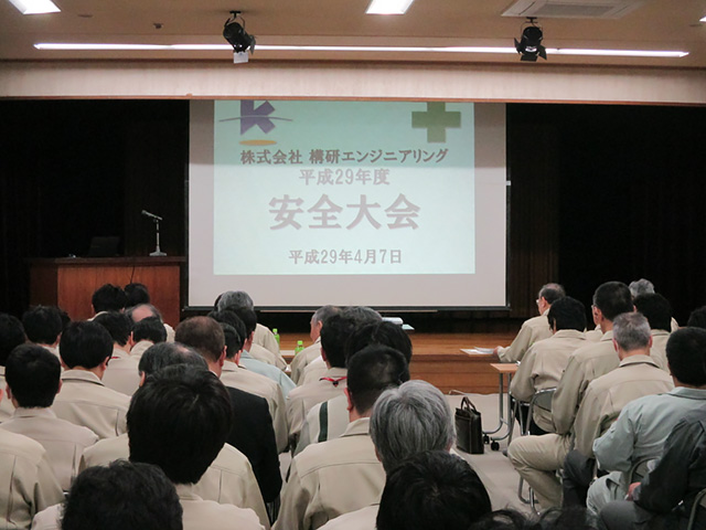 平成29年4月7日に、役職員及び協力会社を対象に、労災事故防止と現場作業(点検、測量、地質調査等)の更なる安全管理の強化を図るため、全社安全大会を実施しました。