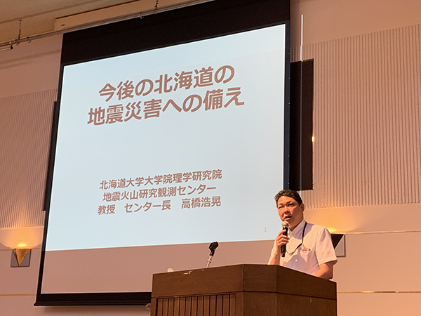 また、北海道大学大学院理学研究院地震火山研究観測センター長 高橋浩晃教授を招き、「今後の北海道の地震災害への備え」をテーマに特別講演をしていただきました。