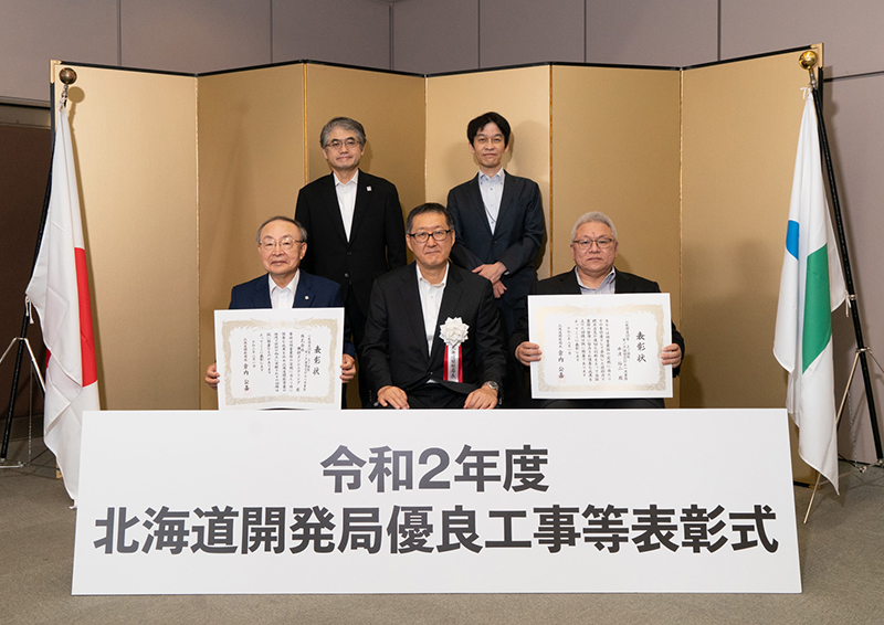 国土交通省北海道開発局「令和2年度優良工事等表彰」において、局長表彰及び部長表彰を受賞いたしました。